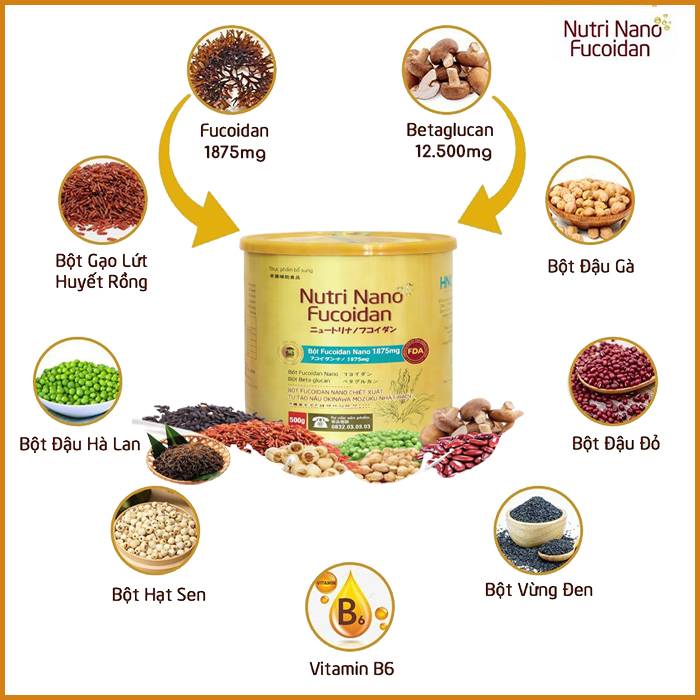 Thành phần chứa 1875mg bột Fucoidan Nano